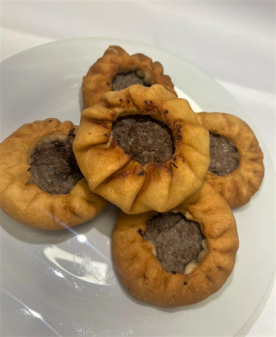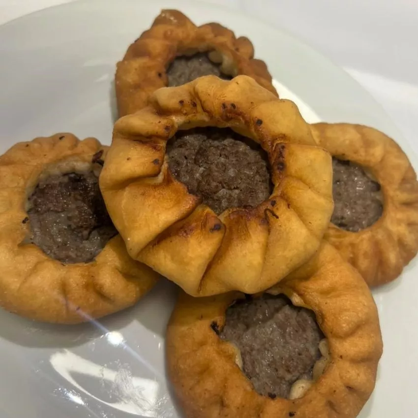 Мясо (говядину) промолоть в комбайне, смешать с мелко нарезанным луком, добавив соль и перец. На середину подготовленных лепешек из дрожжевого теста положить столовую ложку начинки и защипать края теста по кругу, оставив в центре небольшое отверстие. Жарить беляши на разогретой сковороде с маслом, сначала с открытой стороны, а затем под крышкой с закрытой стороны. Беляши готовы, когда в отверстии в центре беляша кипит жир.