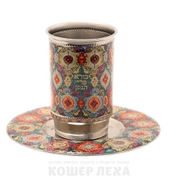 Высокий бокал для кидуша — металл + дизайн — ковёр — разноцветные фигуры - ru.kosherlekha.ru
