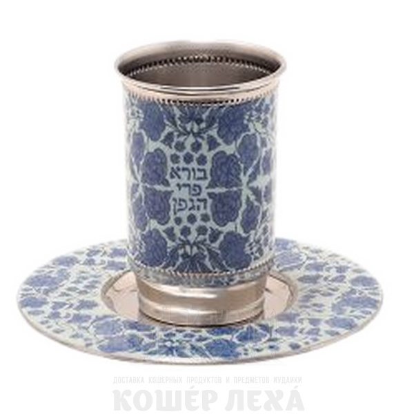 Высокий бокал Для Кидуша - Металл + Дизайн -Синие цветы - ru.kosherlekha.ru