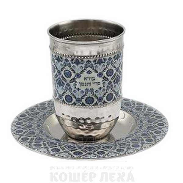 Бокал для Кидуша - Металл + Дизайн - Синяя Вышивка - ru.kosherlekha.ru