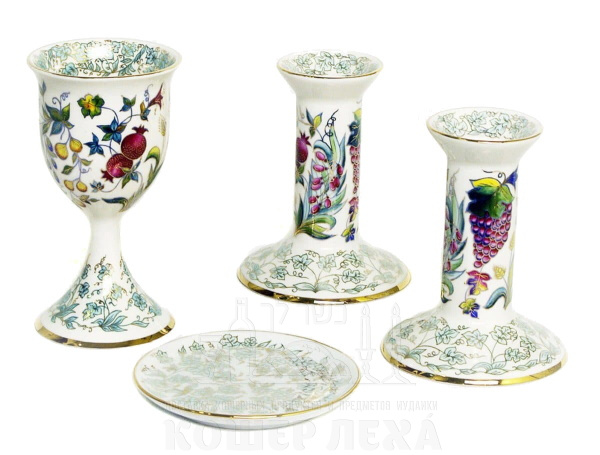 Комплект (бокал, блюдце, пара подсвечников) "Семь плодов" (авторская работа) - ru.kosherlekha.ru